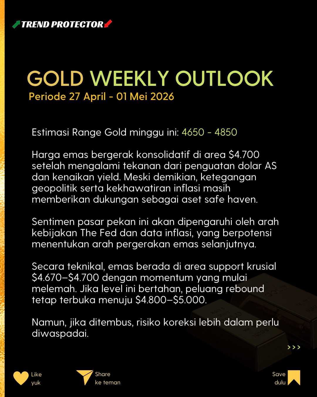 🔰 Estimasi Range Gold minggu ini: 4650 – 4850